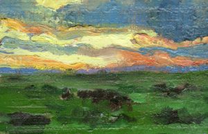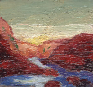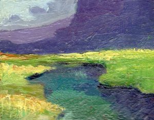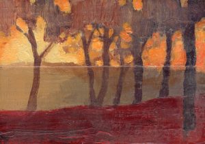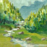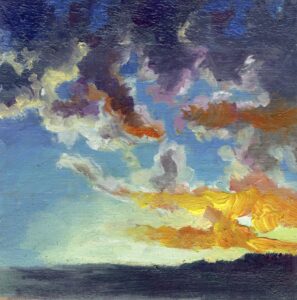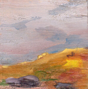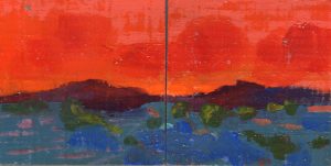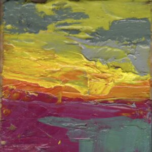 Inmediatez y juego para trabajar la combinación de colores, la luz y el paisaje, así como la composición en formato cuadrado. Más de ciento cincuenta obras -de algunas no conservo registro, ya que cruzaron el Atlántico- que pinté a lo largo de un par de años.