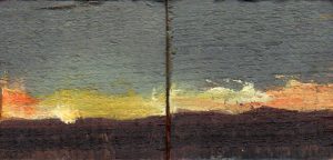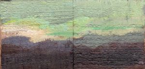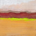 Son obras de pequeño formato, muchas no sobrepasan los diez centímetros cuadrados, y están pintadas sobre madera recuperada, en la que todavía se ve el golpe de sierra. Caben en la palma de la mano, y sus colores vibrantes siempre me han hecho pensar en caramelos, golosinas, o pequeñas joyas que atesorar.